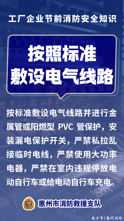 电气线路敷设不规范:一些企业存在电气设备超负荷、电气线路接头接触不良、电气线路短路、照明灯具设置使用不当等火灾隐患。有的企业还将功率较大的灯泡安装在木板、纸等可燃物附近,甚至在易燃易爆的车间内使用非防爆型的电动机、灯具、开关等情况,极易发生火灾。
