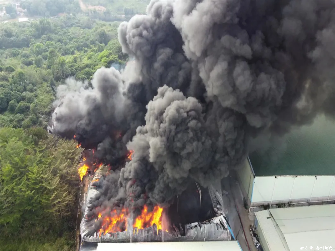 2024年5月13日,惠州一厂房发生火灾,起火建筑为4层钢混结构,着火部位为楼顶铁皮棚,主要燃烧物为生产设备、树脂、包装纸皮等。