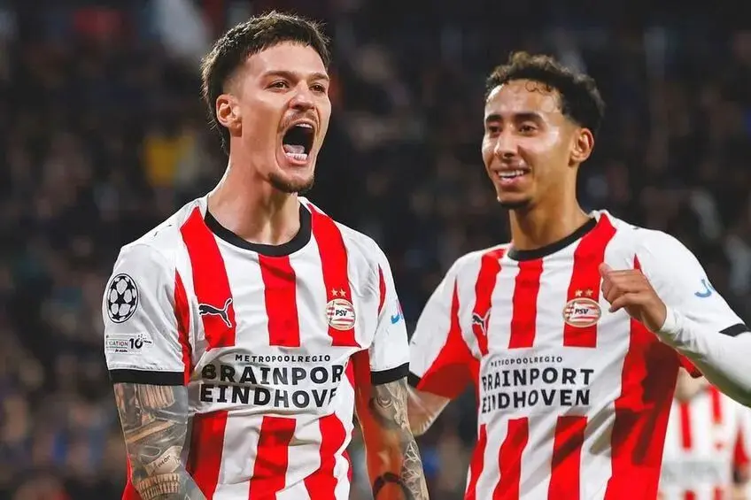 首轮负于圣吉罗斯后,PSV 先平药厂、再 6-2 暴击十人那不勒斯。 罗马尼亚国脚梅开二度:小角度穿裆推射、禁区外爆杆,助球队大胜。